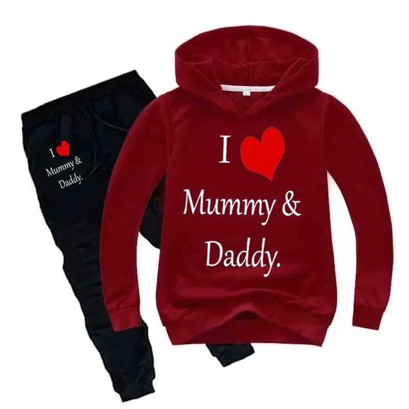 Trendy Shop Kids I love Mummy and Daddy Printed Hoodie Style Track-Suit.