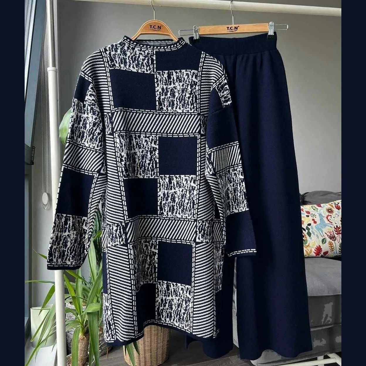 Texture Printed Long Premium Quality Winter 2-Pcs Tracksuit For Her. WWTS-04