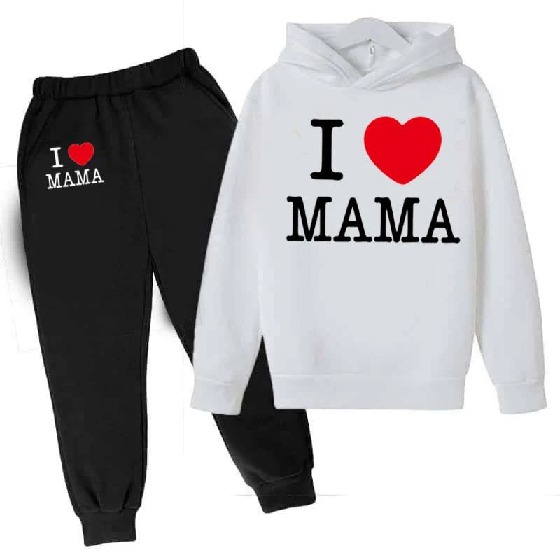 Trendy Shop I Love MAMA Kids Hoodie Style Winter Tracksuit